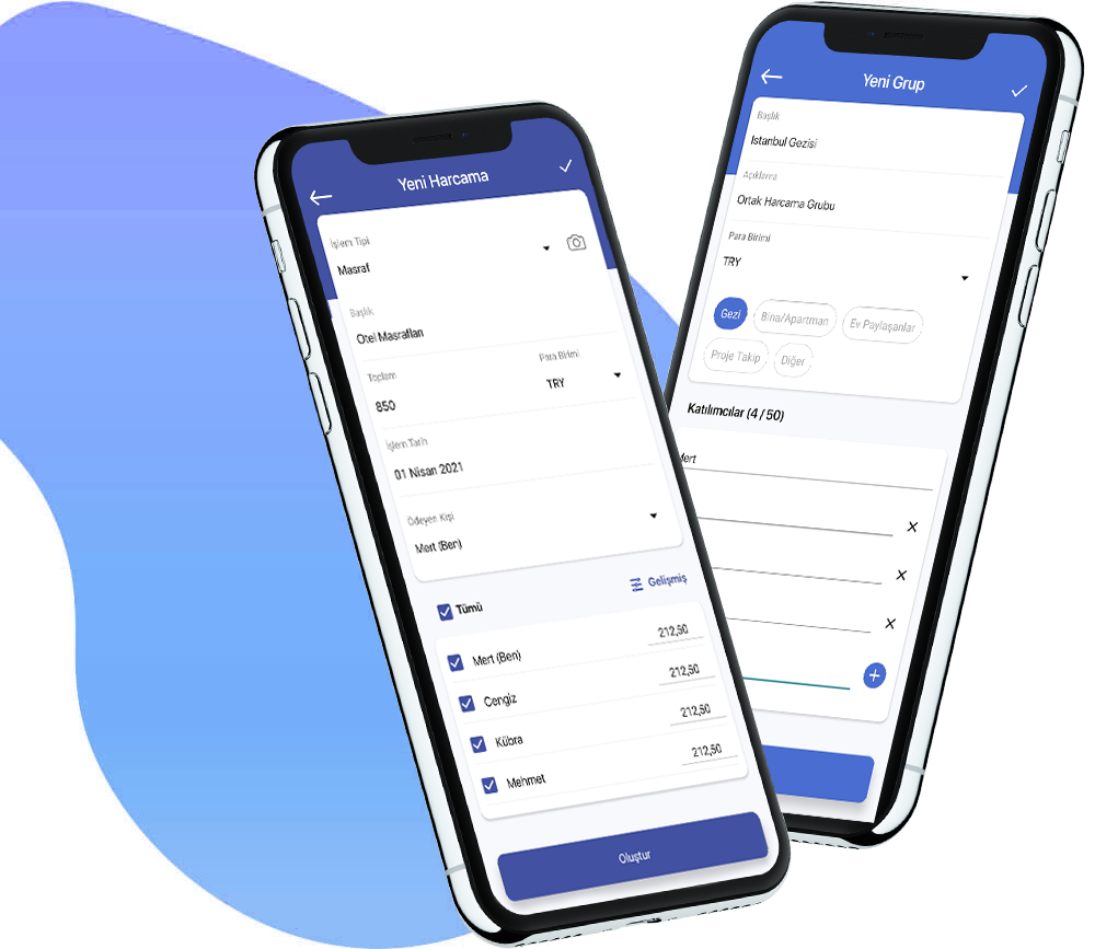 Harcamaları grupta eşit bölüştürebileceğiniz gibi, dilerseniz farklı rakam ya da ağırlıkta